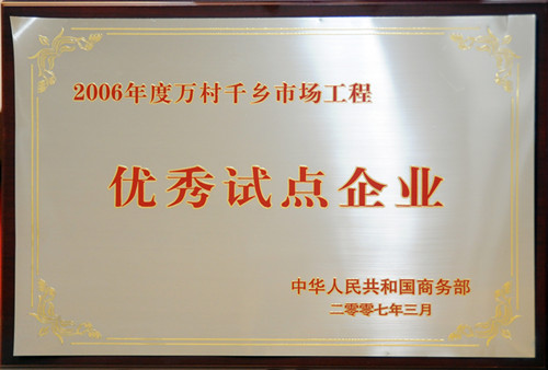 華億集團被國家商務部授予萬村千鄉市場工程“優秀試點企業”稱號。