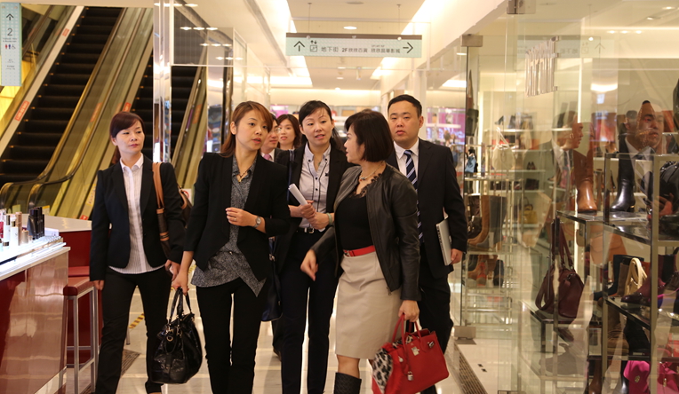 考察團第一站參觀了臺灣百貨行業的代表:欣欣百貨、大遠百購物中心和京站時尚廣場。欣欣百貨張惠君總經理介紹,在競爭日益激烈的臺北商業環境中,開業30余年的欣欣百貨不做盲目擴張,穩扎穩打,通過對商場購物環境的打造和精心周到的服務,形成了自己的經營特色,贏得了市場的認可。走在大遠百購物中心,遠百人mega city的理念在臺北板橋店得到完美詮釋。威尼斯主題餐飲,仿五六十年代老臺北街市,意大利嘉年華等設計讓人耳目一新。而京站時尚廣場的建筑風格、設計元素、購物環境、空間利用、主題氛圍等,給考察團留下了深刻的印象。