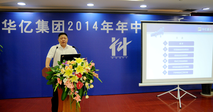 2014年7月25、26日,安徽華億集團2014年年中經濟工作會議在華億國際報告廳召開。會議本著“簡約、高效、務實、聚力”的原則,總結了集團各公司上半年的工作,研討當前的市場形勢和走向,對今后一段時期的重點工作進行了部署。大會由項領總裁主持,集團總部和各分公司高層管理干部參加了會議,華億集團董事長項義水出席會議。