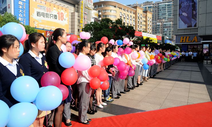 今天蕪湖的天空格外晴朗,千余名華億員工身著整齊的服裝,手持五彩氣球,在華億廣場(chǎng)上整齊列隊(duì),千余只和平白鴿在華億廣場(chǎng)等待放飛。上午8:45分,升旗儀式正式開始,在華億軍樂隊(duì)演奏的莊嚴(yán)國(guó)歌聲中,五星紅旗和華億集團(tuán)司旗緩緩升起。隨后,華億集團(tuán)總裁項(xiàng)領(lǐng)發(fā)表講話。他表示,進(jìn)入2014年以來,集團(tuán)在業(yè)態(tài)豐富、品牌創(chuàng)新、對(duì)外連鎖等方面,快速推進(jìn),成就斐然。在項(xiàng)目業(yè)態(tài)上,創(chuàng)出“華億城市生活廣場(chǎng)-現(xiàn)代社區(qū)新型服務(wù)綜合體”的概念,短短9個(gè)月,融匯錦江、長(zhǎng)江長(zhǎng)、徽商春天、凱帆大廈等四家華億生活超市社區(qū)店相繼開業(yè),繁昌、星隆兩家大型生活超市正在籌建之中。與此同時(shí),阜陽(yáng)華億國(guó)際購(gòu)物中心、繁昌華億廣場(chǎng)、華億國(guó)際星隆店“三箭齊發(fā)”、同步推進(jìn)。在經(jīng)營(yíng)上,華億國(guó)際購(gòu)物中心銷量穩(wěn)步提升,特別是剛剛結(jié)束的一年一度的“大搶節(jié)”活動(dòng),創(chuàng)下了銷售額翻番的成績(jī)。華億環(huán)球影城市場(chǎng)份額穩(wěn)居蕪湖首位,占據(jù)了全市票房的半壁江山。華億集團(tuán)取得的每一點(diǎn)成績(jī),都與我們國(guó)家的政通人和、繁榮富強(qiáng)、深化改革和擴(kuò)大開放的宏觀環(huán)境密不可分。今天,在這里舉行升國(guó)旗儀式,就是要感謝偉大的祖國(guó),感謝偉大的黨,感謝偉大的人民,進(jìn)一步弘揚(yáng)愛國(guó)主義、集體主義精神,弘揚(yáng)社會(huì)主義核心價(jià)值觀,把滿腔愛國(guó)之情化作推進(jìn)企業(yè)發(fā)展的精神動(dòng)力,把華億集團(tuán)的各項(xiàng)事業(yè)推向新的高度。