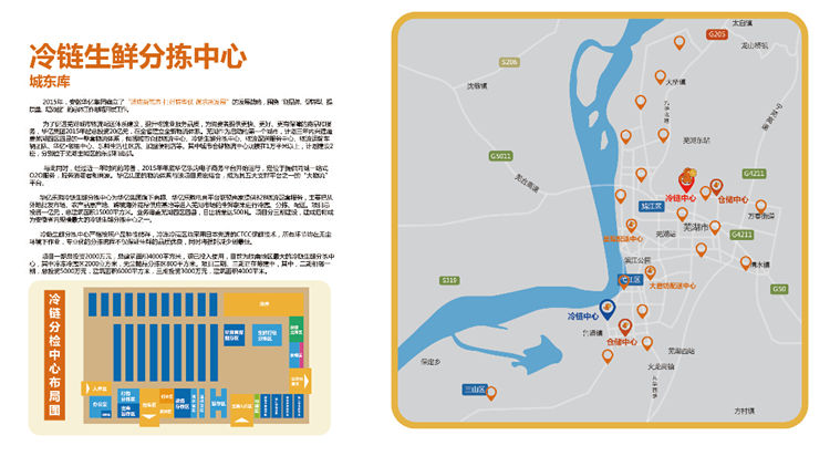 1、華億樂購冷鏈生鮮分揀中心為華億集團集團旗下商超、華億樂購電商平臺聯盟商家提供B2B物流配套服務,主要把從外地批發市場、農產品原產地、跨境海外商品供應基地等進入蕪湖市場的生鮮蔬果進行冷藏、分揀、配送。項目總投資一億元,總建筑面積15000平方米。業務覆蓋蕪湖四區四縣,日出貨量達500噸。項目分三期建設,建成后將成為安徽省內規模最大的冷鏈生鮮分揀中心之一。