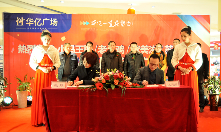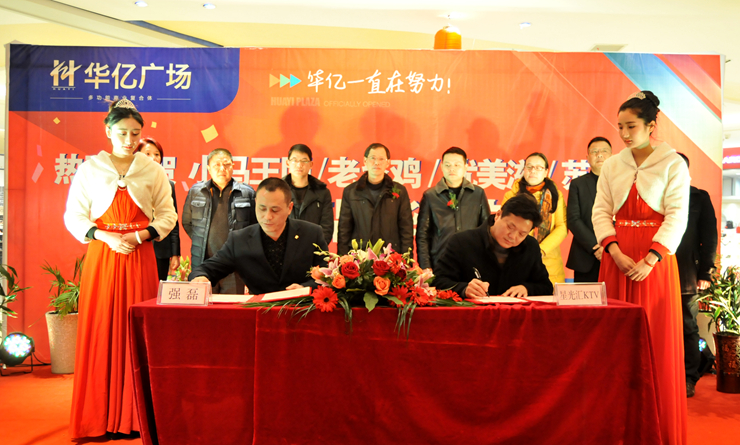 2016年2月5日,繁昌華億廣場品牌入駐簽約儀式在廣場一樓中庭舉行。繁昌縣委常委、組織部長郝代偉、統(tǒng)計局局長姚士群、團縣委書記胡俊、物價局副局長劉兆菊、招商局副局長陳守峰出席簽約儀式,蘇寧云商蕪湖大區(qū)總經(jīng)理左濤、優(yōu)美茲董事長楊文君、老鄉(xiāng)雞開發(fā)部總監(jiān)呂海峰、星光匯KTV董事長謝玉泉,華億集團總裁項領、總裁助理陳雪榮、華億國際總經(jīng)理張樹華、華億置業(yè)公司常務副總經(jīng)理吳學軍、華億國際副總經(jīng)理張玲共同參加簽約儀式。