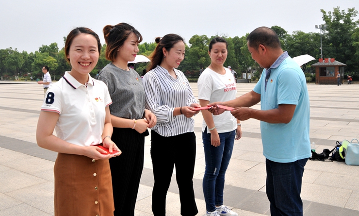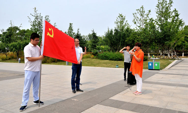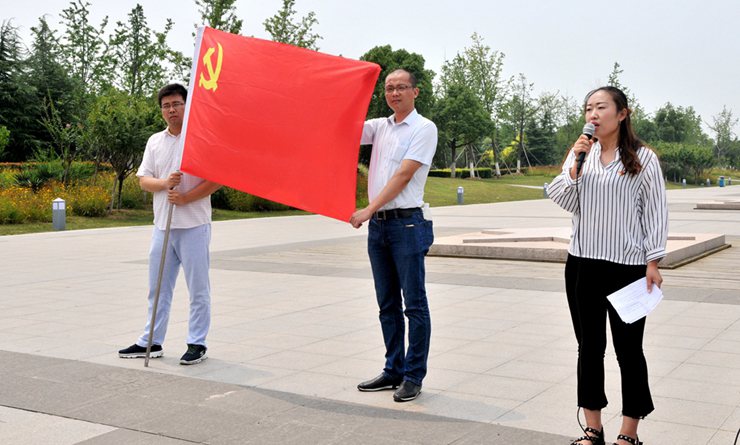 上午10時,全體人員來到合肥渡江戰役紀念館勝利廣場,肅立注目,舉行了簡短的入黨宣誓儀式活動。在雄壯的《國歌》奏響之后,集團黨委副書記孫艷宣讀了鏡湖區區委決定及新黨員名單。隨后,新加入中國共產黨的4名黨員和全體黨員面對黨旗,舉起拳頭,進行莊嚴宣誓。宣誓結束后,集團黨委成員為新入黨黨員頒發黨員證。