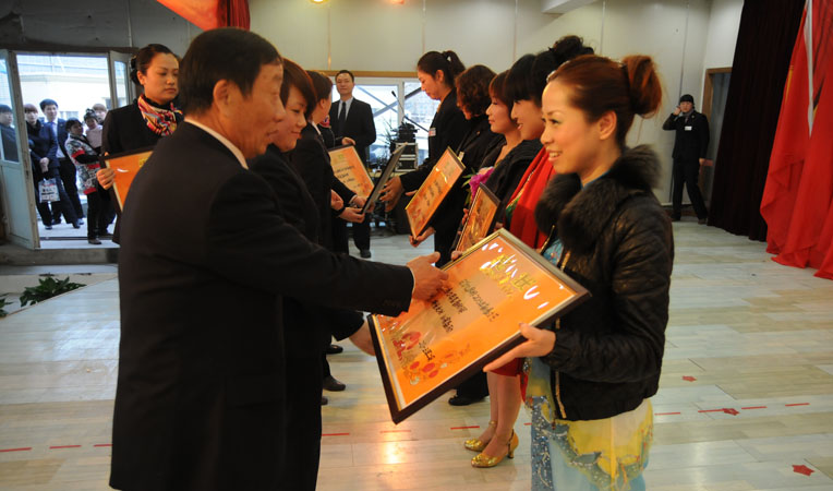 大會在華億國際女子銅管樂隊奏響的《國歌》、《華億之歌》聲中開幕。華億集團副董事長、華億國際副總經理章國琴宣讀了2012年度表彰先進的決定。獲獎的先進個人、先進班組及先進部門先后上臺,從與會領導手中接過榮譽證書和獎金,并先后發表獲獎感言。項領總經理代表華億國際經營班子,作2012年度工作總結及2013年工作部署的報告。他說,2012年華億國際圍繞“一個核心、四項重點”開展工作,保證經營穩定增長的同時,企業品牌影響力、市場占有率持續提升。在A座封場改造六個月的情況下,仍超額完成全年目標任務,殊為難得。這是公司上下齊心協力、頑強拼搏的結果。全年工作,新意迭出,亮點頻現,A座升級改造圓滿成功,逐步適應了以SKU管理為試點的指標量化管理,完成KPI考核的準備工作,VIP各項活動高潮迭起,合理調整組織架構,全面推行預算管理,安全工作卓有成效,品牌建設和企業文化建設成果巨大。2013年,華億國際將在集團統一領導下,堅持“拓展連鎖規模,提升服務價值,豐富旗艦內涵,強化支撐體系,深化精細管理”的工作思路,穩步推進“華億國際”對外連鎖拓展;持續推行“品質服務、從心開始”的理念,提升服務品質;進一步提高蕪湖旗艦店的品位,優化品牌結構,打造模板;促進公司薪酬體系與績效管理逐步邁向正規化,為連鎖發展提供支撐體系;以SKU管理為中心,以提高經營效益為主旨,持續把精細管理推向深入。