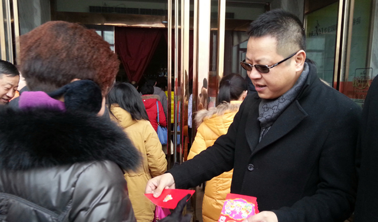 爆竹聲聲辭舊歲,龍騰虎躍賀新春。2013年2月10日,農歷大年初一,伴隨著陣陣寒風,新年的第一天上午,華億集團董事長項義水、副董事長章國琴、總裁項領等領導深入工作第一線給商場員工拜年并派發紅包。