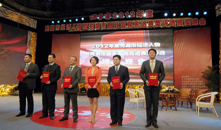 2012年度蕪湖市經(jīng)濟(jì)人物暨蕪湖市創(chuàng)業(yè)富民先進(jìn)典型頒獎(jiǎng)晚會(huì),于2013年1月30日晚在蕪湖市廣播電視臺(tái)舉行。此次活動(dòng)由中共蕪湖市委宣傳部、蕪湖市發(fā)改委、蕪湖市經(jīng)委、蕪湖市工商聯(lián)、蕪湖廣播電視臺(tái)等單位主辦,旨在展示經(jīng)濟(jì)領(lǐng)域的先進(jìn)人物,弘揚(yáng)創(chuàng)業(yè)精神,為企業(yè)、企業(yè)主、經(jīng)濟(jì)工作者搭建一個(gè)相互交流、溝通、展示的平臺(tái),促進(jìn)地方經(jīng)濟(jì)更快更好地發(fā)展。經(jīng)過(guò)為期兩個(gè)月的評(píng)選,華億集團(tuán)公司總裁、華億國(guó)際總經(jīng)理項(xiàng)領(lǐng),榮獲“2012年度蕪湖市經(jīng)濟(jì)人物”稱(chēng)號(hào)。