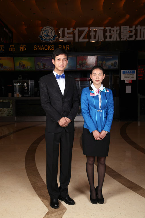 2013月4月8日,華億環(huán)球影城一線工作人員統(tǒng)一穿著漂亮的新工裝上崗,為影城增添了一道嶄新的風(fēng)景。新工裝款式新穎,端莊大方,充分展現(xiàn)了員工意氣風(fēng)發(fā)的精神面貌,進一步提升了華億影城的服務(wù)窗口形象。