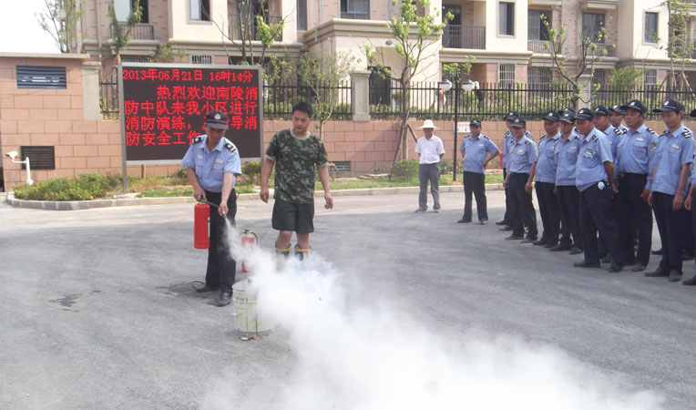 演練結束后,消防官兵對華億物業公司的安保人員進行了全面、系統的防火、滅火知識培訓,對滅火器材的使用進行講解,并現場操作示范。
