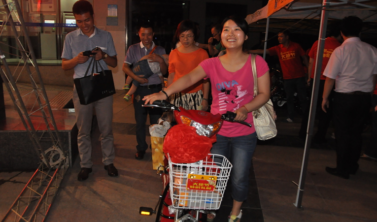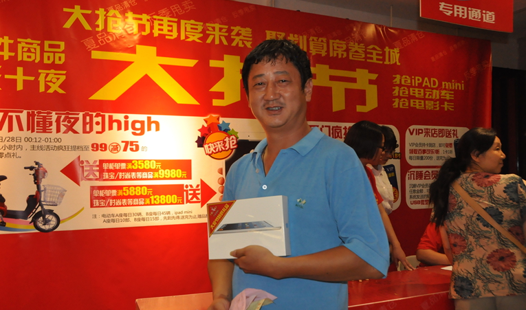 凌晨12點12分,久等了的顧客們,終于領到了心儀的IPADmini、電動車。