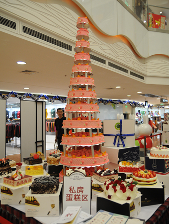 為了答謝廣大江城市民長期以來的支持,今年店慶特別策劃了“巨型蛋糕千人分享”活動。在華億國際B座3樓中庭,一塊寬3米,長7米的巨型蛋糕和一塊高2.8米12層的慶典蛋糕,引來了消費者的一片驚嘆。一位顧客,邊吃蛋糕,邊驚嘆,“能吃到蕪湖史上最大的蛋糕,簡直太幸運了”。此外,數十個品種、千余盒糕點,以及千余杯精品飲料,滿足了不同顧客的需求。在工作人員的指引下,顧客排隊有序選取可口的糕點,大家爭相留影,通過微信微博和朋友分享,臉上洋溢著甜蜜的笑容,活動現場成為一片喜悅的海洋。