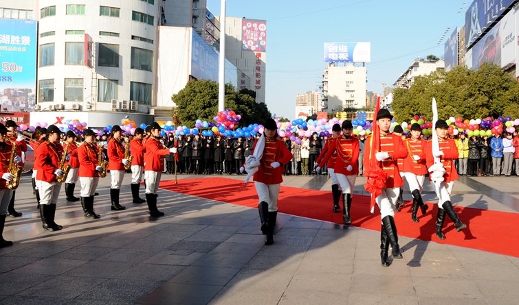 上午8:30,華億國際員工代表手持彩色氣球,肅立在步行街華億國際A座門前廣場,華億女子軍鼓樂隊、升旗隊精神昂揚,市民翹首觀禮。8時58分,主持人宣布慶典活動正式開始。在莊嚴的國歌聲中,五星紅旗和華億集團司旗緩緩升起。隨后,華億國際總經理張樹華發表店慶賀辭。他表示,2014年,在全體員工的努力下,華億國際取得了一定的業績,保質保量完成2014年各項經營指標的同時,在對外連鎖拓展方面取得了進展,阜陽華億國際、繁昌華億國際將于2015年年初開業。新的一年里,華億國際將繼續發揚奮勇拼搏的精神,以最優質的商品和服務回饋顧客,為蕪湖商業的繁榮做出應有的貢獻。