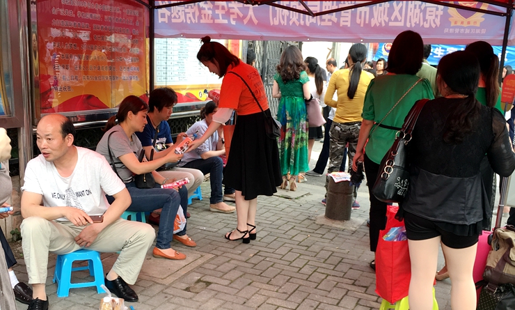 高考期間,天氣有些悶熱,華億樂購工作人員一大早就開始忙碌起來,完成礦泉水裝車后已是滿頭大汗。上午8時許,標有小馬logo的小貨車分別來到市一中和安師大附屬外國語學校考點,華億樂購市場部工作人員迅速搭起了醒目的愛心送水點,為考生和家長提供愛心服務。活動期間,身著橙黃工作服的樂購員工穿梭在人群中間,主動為等候在考點門口的學生和家長送上礦泉水和最真誠的問候和祝福,贏得了考生和家長的贊許。