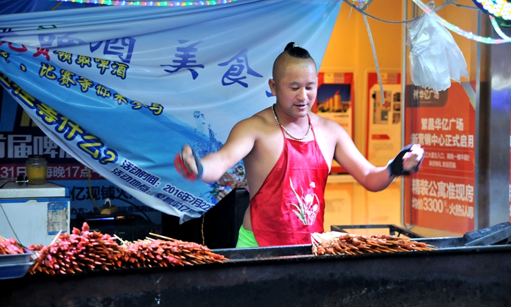 傍晚,繁昌華億廣場一側,近30家美食攤點整齊有序的相對排開,宛如一條嶄新的美食街。炭烤新西蘭牛排、紅燒小龍蝦、重慶酸辣粉、湖南臭豆腐,泰國昆蟲等美食,品種豐富、健康衛(wèi)生,吸引了繁昌縣城鄉(xiāng)鎮(zhèn)市民紛紛趕來。在美食藝人盡情的演繹下,各式各樣的美食變得更加誘人,市民爭相品嘗。不少美食攤主在烹飪美食的過程中,加入歌唱、舞蹈等即興表演,現(xiàn)場的氣氛十分熱鬧。在廣場美食街的入口處,繁昌華億廣場準備了免費啤酒,每位到場的市民可以領取一瓶。
