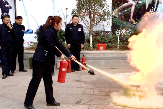 消防演練現場共有來自各部門、樓層、華億生活超市共計60余名管理人員及銷售人員參加,華億國際星隆店安保部消防專業人員現場講解、演示滅火器的使用步驟及注意事項,員工們也分組進行了滅火實戰演練。