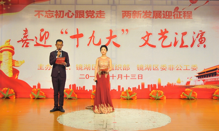 10月13日下午,鏡湖區(qū)“不忘初心跟黨走 兩新發(fā)展迎征程”——喜迎'十九大'文藝匯演在區(qū)政府大禮堂舉行。華億舞蹈團(tuán)應(yīng)邀參加演出,表演的開場(chǎng)舞《美麗中國走起來》引起觀眾陣陣喝彩。