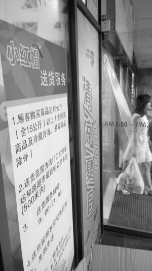華潤萬家華東地區的門店也新推了“小紅帽送貨服務”:顧客購買15公斤以上商品(易碎品、生鮮、冷藏冷凍商品除外),可以送到500米以內的公交車站或者停車場?!案浇念櫩鸵部梢灾苯哟螂娫挼轿覀冮T店服務臺告知要購買的商品,超過150元后我們也可以免費送貨上門。”華潤萬家施家橋店店長透露。