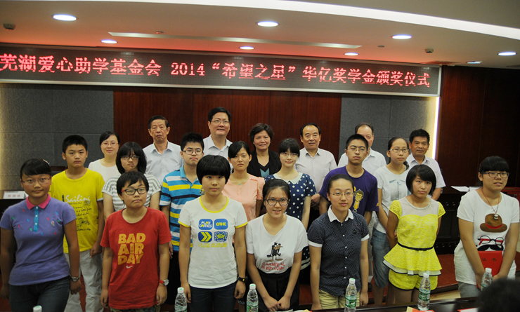 • 8月20日上午,蕪湖市愛心助學基金會舉行2015年度“希望之星”華億獎學金頒獎儀式。18位在今年中、高考中取得優異成績的學生獲獎。