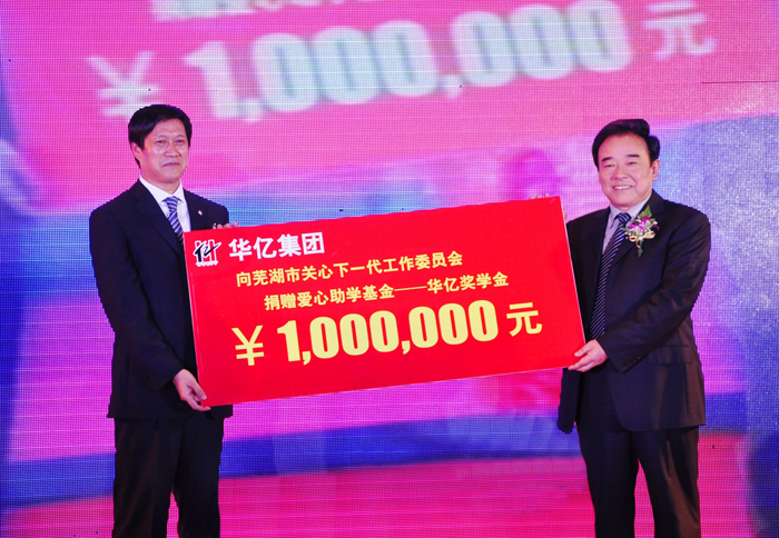 在集團十周年慶典期間,華億集團再興義舉,向蕪湖市愛心助學基金捐資100萬元人民幣,設立"蕪湖市愛心助學基金華億獎學金".9月29... -