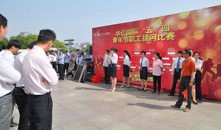 2012年5月4日,為慶祝“五四”青年節,華億國際在步行街華億廣場A座門前廣場舉辦了“五?四青年節職工拔河比賽”。